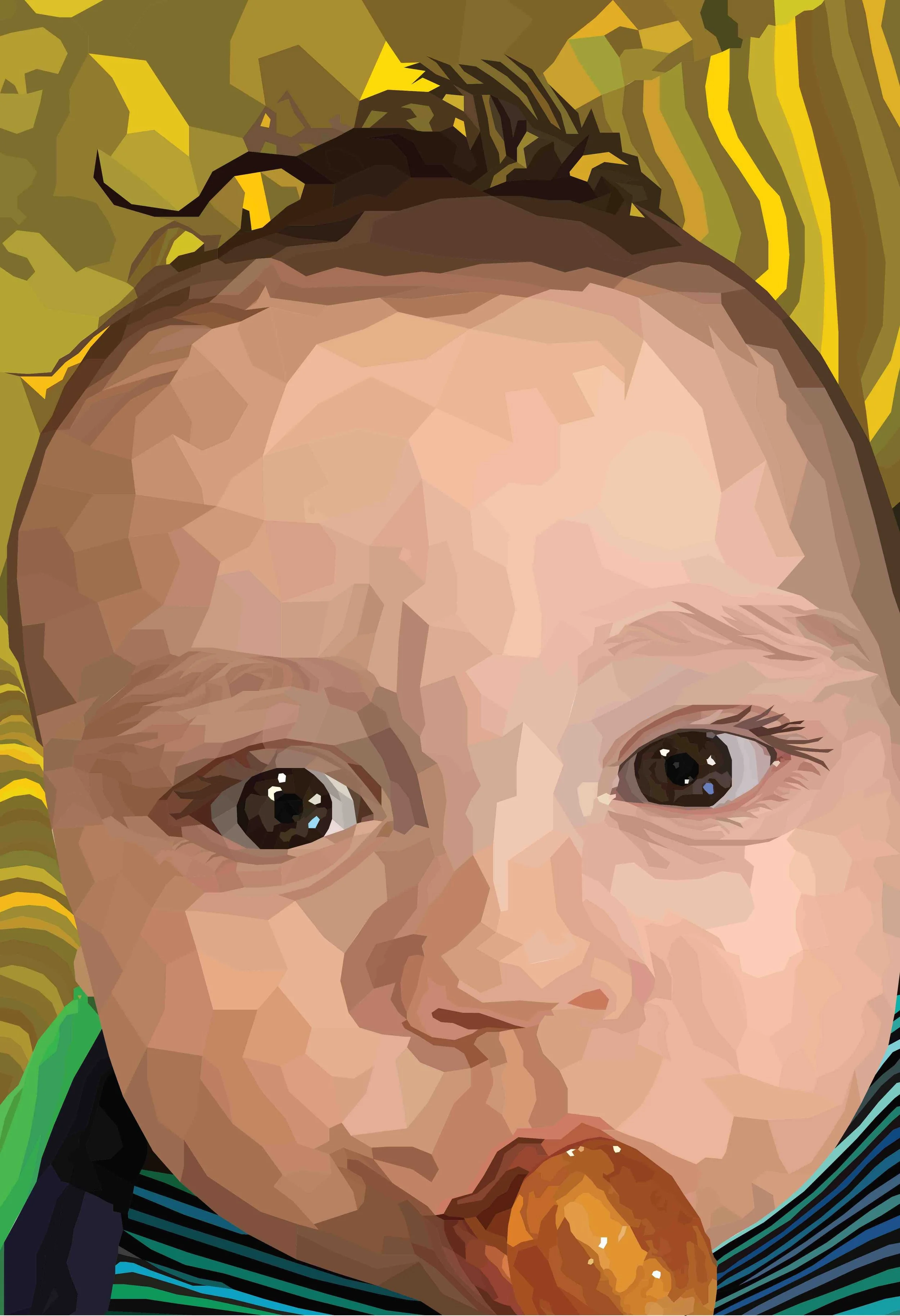 A portrait made using Illustrator using different shapes.